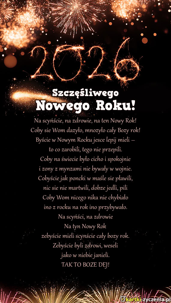 A w Nowym 2026 roku życzymy Wam wszelkiej pomyślności, zdrowia, spokoju, radości i miłości ora - Gotowa kartka noworoczna