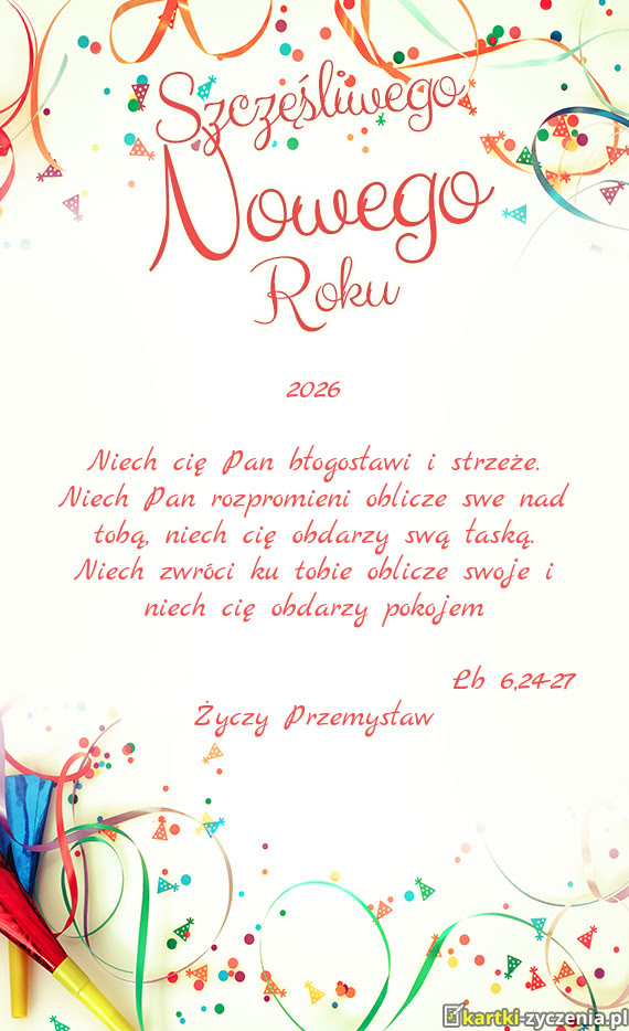 Niech Pan rozpromieni oblicze swe nad tobą, niech cię obdarzy swą łaską - Gotowa kartka noworoczna