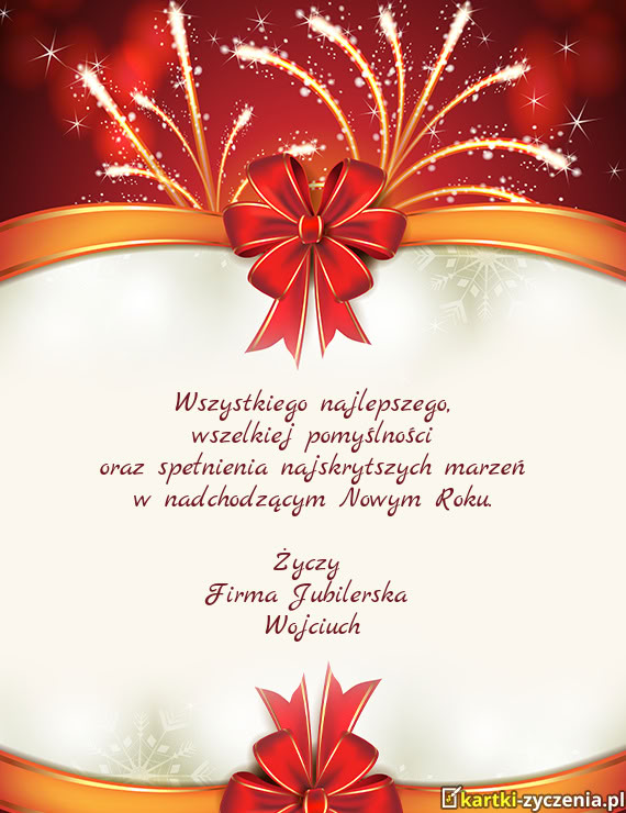 Wszelkiej pomyślności oraz spełnienia najskrytszych marzeń w nadchodzącym Nowym Roku - Gotowa kartka noworoczna