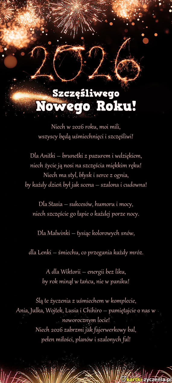 Ania, Julka, Wojtek, Lusia i Chihiro – pamiętajcie o nas w noworocznym locie!